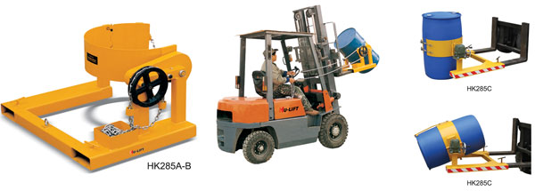 ● HK285A,HK285B駕駛員無需離開叉車,通過鏈條即可實現(xiàn)油桶的翻轉,HK285C通過手搖實現(xiàn)油桶翻轉