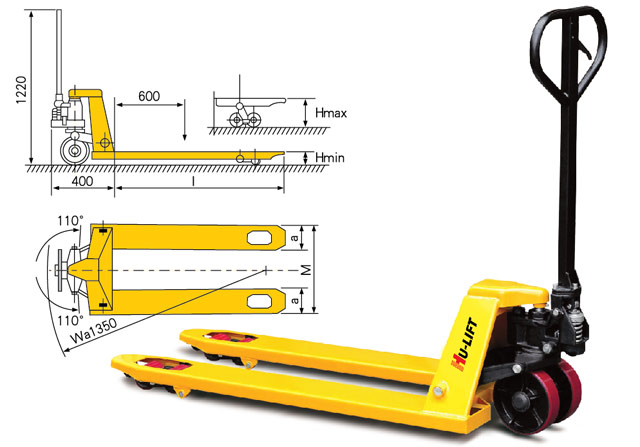 ◆貨叉最小Hmin/最大高度Hmax為75/195mm可選 ◆以上產(chǎn)品特殊貨叉長度可定制:800、1500、1800、2000mm ◆前輪標準配置為雙輪,單輪可定制 ◆后輪標準配置為聚氨酯(PU),另有尼龍輪、橡膠輪可定制